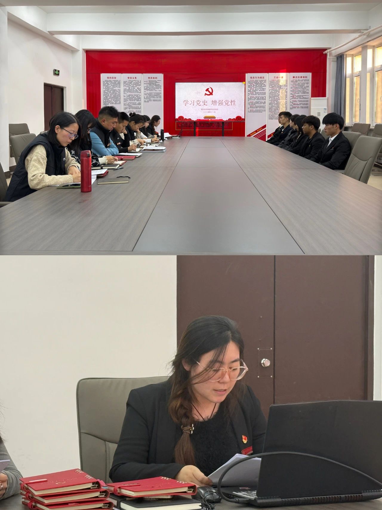 为扎实推进党史学习教育,提升党员的政治觉悟。2024年11月21日,2138CC太阳集团学生党支部在业精楼D510会议室开展“学党史,强党性”主题党课。学生党支部书记牟婷婷主讲,全体师生党员参加学习。
