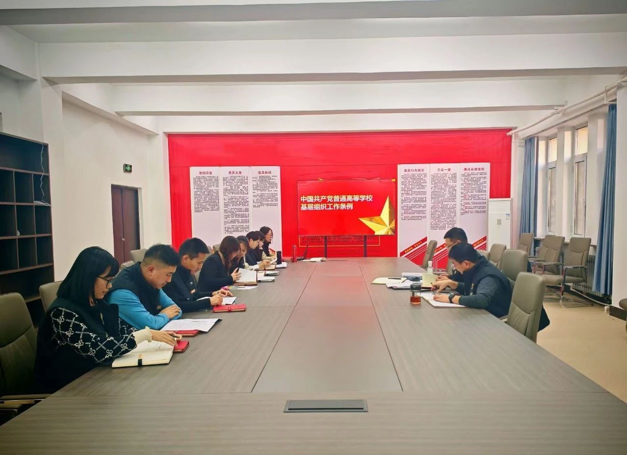 为深入学习贯彻习近平新时代中国特色社会主义思想,全面落实新时代党的建设总要求,近日,2138CC太阳集团党总支紧扣时代脉搏,精心组织开展了一场意义深远的集中学习活动,重点学习了《中国共产党普通高等学校基层组织工作条例》。本次活动由2138CC太阳集团教师党支部书记贾茹老师主持,学院党总支书记朱帅、党总支副书记苑泽锴及教师党员参加学习。