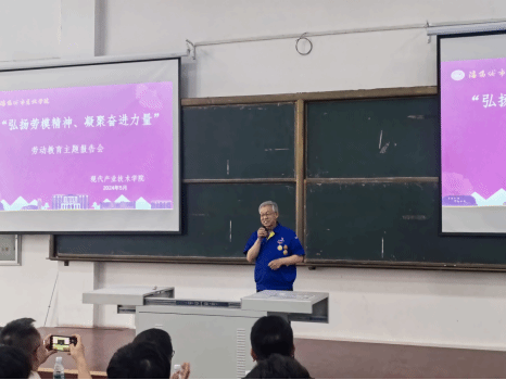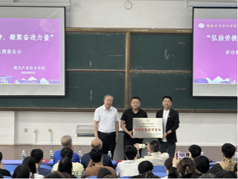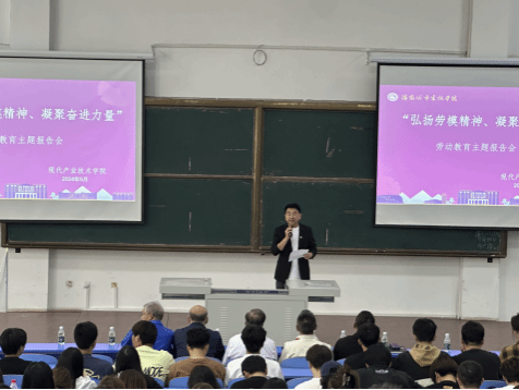 为深入学习贯彻习近平新时代中国特色社会主义思想,大力弘扬劳动精神,引导同学们从劳模身上汲取奋进力量,近距离感受劳模风范、劳动精神和工匠精神,现代产业技术学院在知行楼礼堂举行“弘扬劳模精神、凝聚奋进力量”劳动教育主题报告会。活动特别邀请到全国劳动模范杨建华老师做专题宣讲,学院200多名师生聆听讲座。