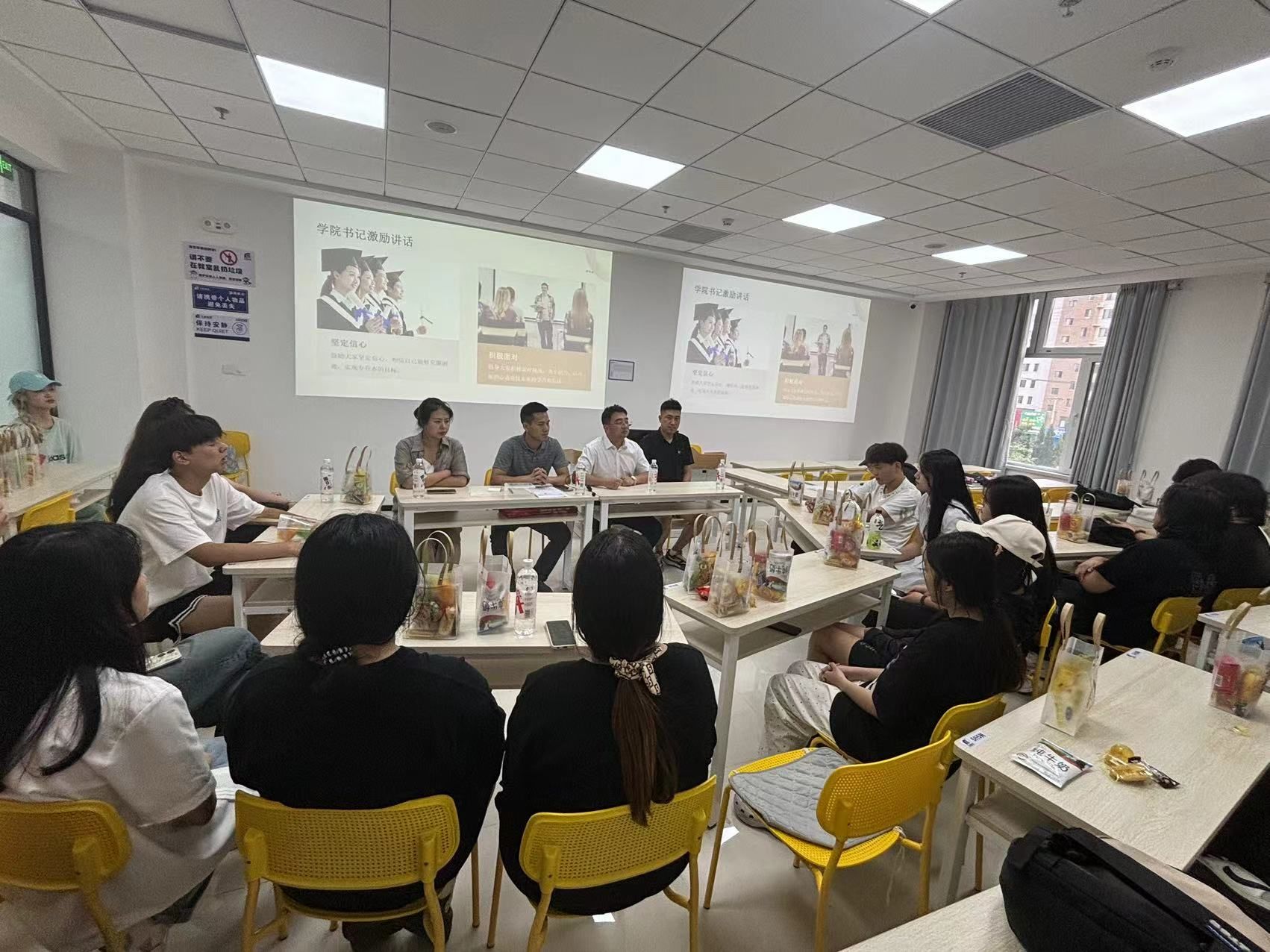 活动开始前,学院党总支书记朱帅与老师们精心准备了满载心意的暖心礼包,共同为学子们送上关怀与祝福,此次活动不仅是对学子们努力备考的认可,更是对他们未来成功的坚定支持与鼓励。活动中特别设置了时间胶囊仪环节,不仅让学生们感受到了时间的宝贵与未来的可期,更激发了他们努力备考的决心与信心。