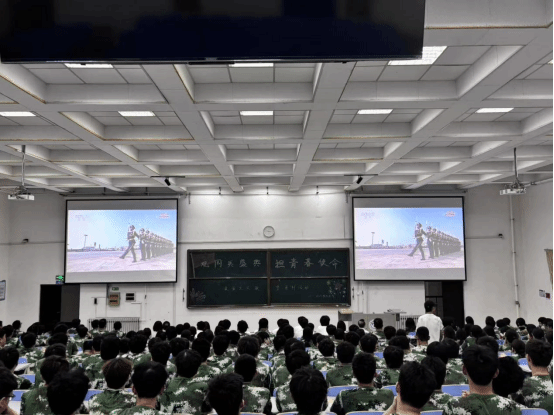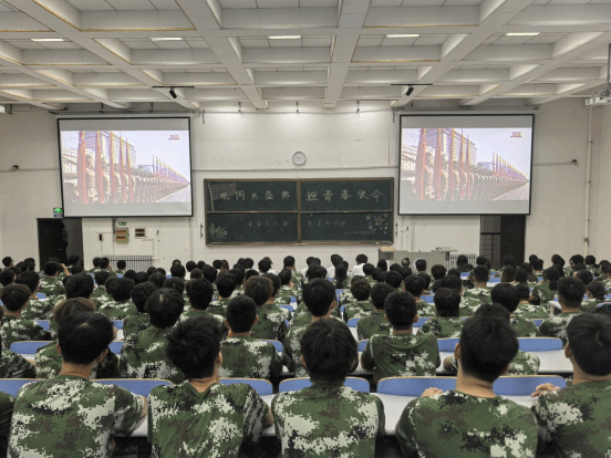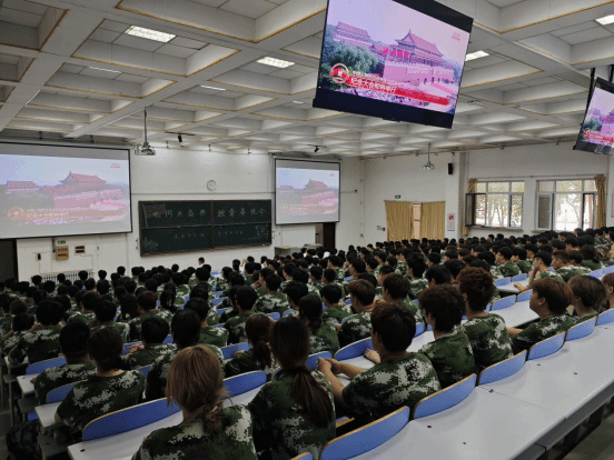 当庄严的国歌声响起时,全体师生自发起立,齐声高唱国歌,嘹亮的歌声在礼堂内回荡,表达了师生们对祖国最深沉的热爱。在观看阅兵仪式时,官兵们整齐划一的步伐、铿锵有力的口号,让在场师生无不为之动容,阵阵掌声不时响起。