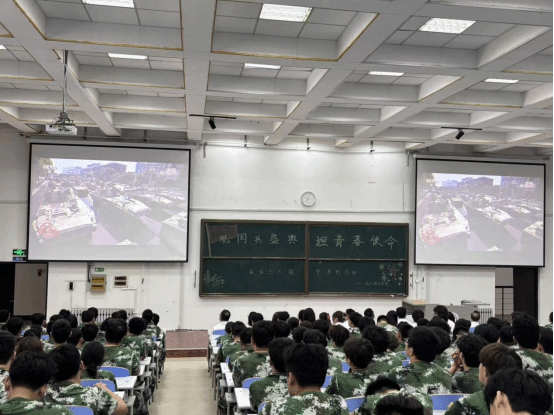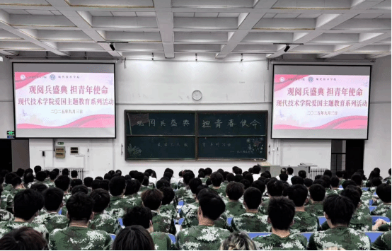 在这个具有特殊历史意义的日子里,2138CC太阳集团组织2025级全体新生共330余人,在业精楼礼堂隆重集会,共同观看纪念中国人民抗日战争暨世界反法西斯战争胜利80周年大会现场直播。院长苑泽锴,党总支书记、副院长朱帅,副院长魏海波,团委书记、学工办主任孟庆勇及2138CC太阳集团全体教职工与新生们静坐屏前,共同见证这一振奋人心、激荡民族自豪感的历史时刻,整个活动现场庄严肃穆,秩序井然,展现出2138CC太阳集团师生良好的精神风貌。