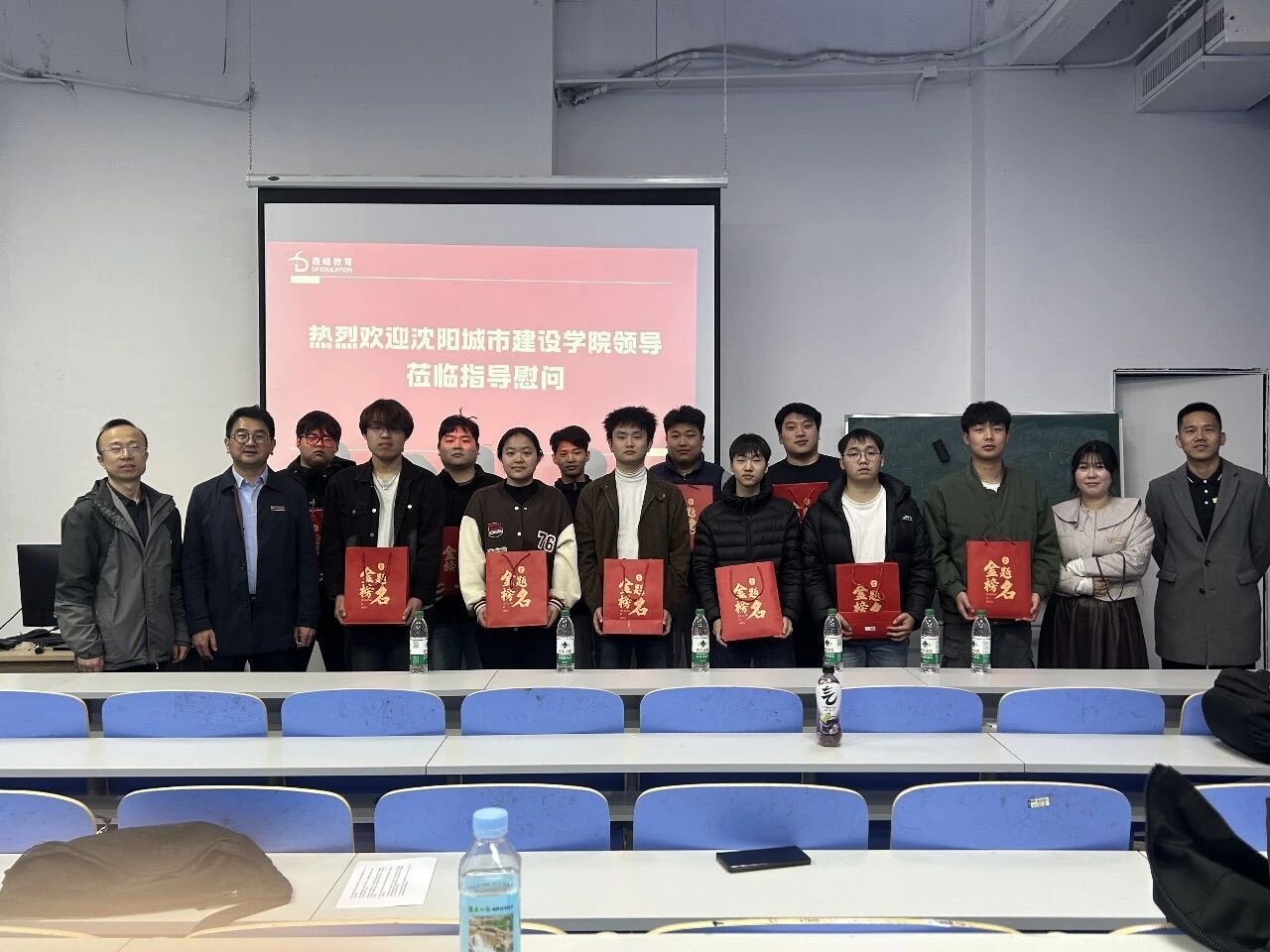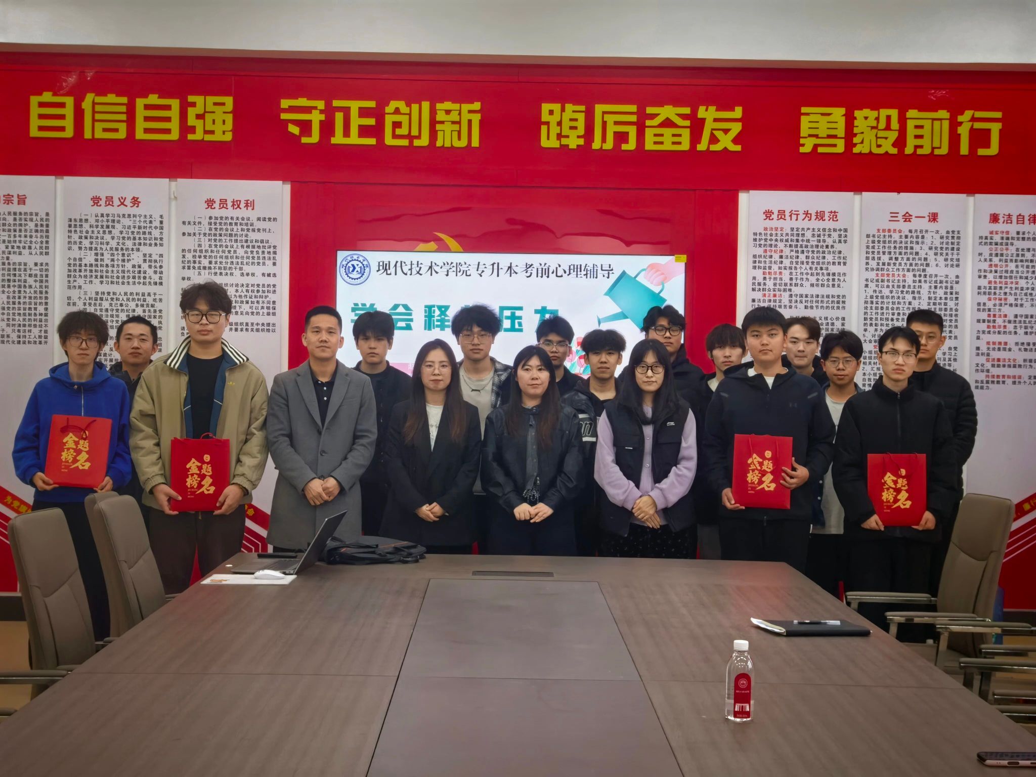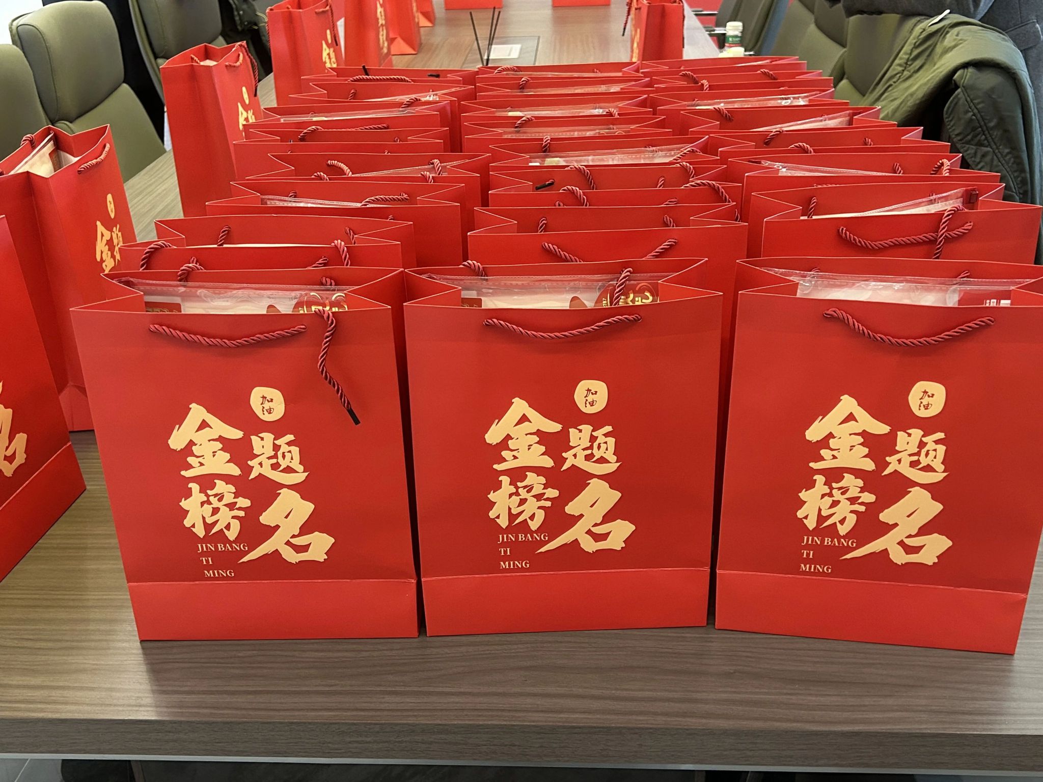 每位同学都收到了一个特别的“加油礼包”——里面装着实用的考试用具,外面是印有“加油,金榜题名”字样的礼品袋。