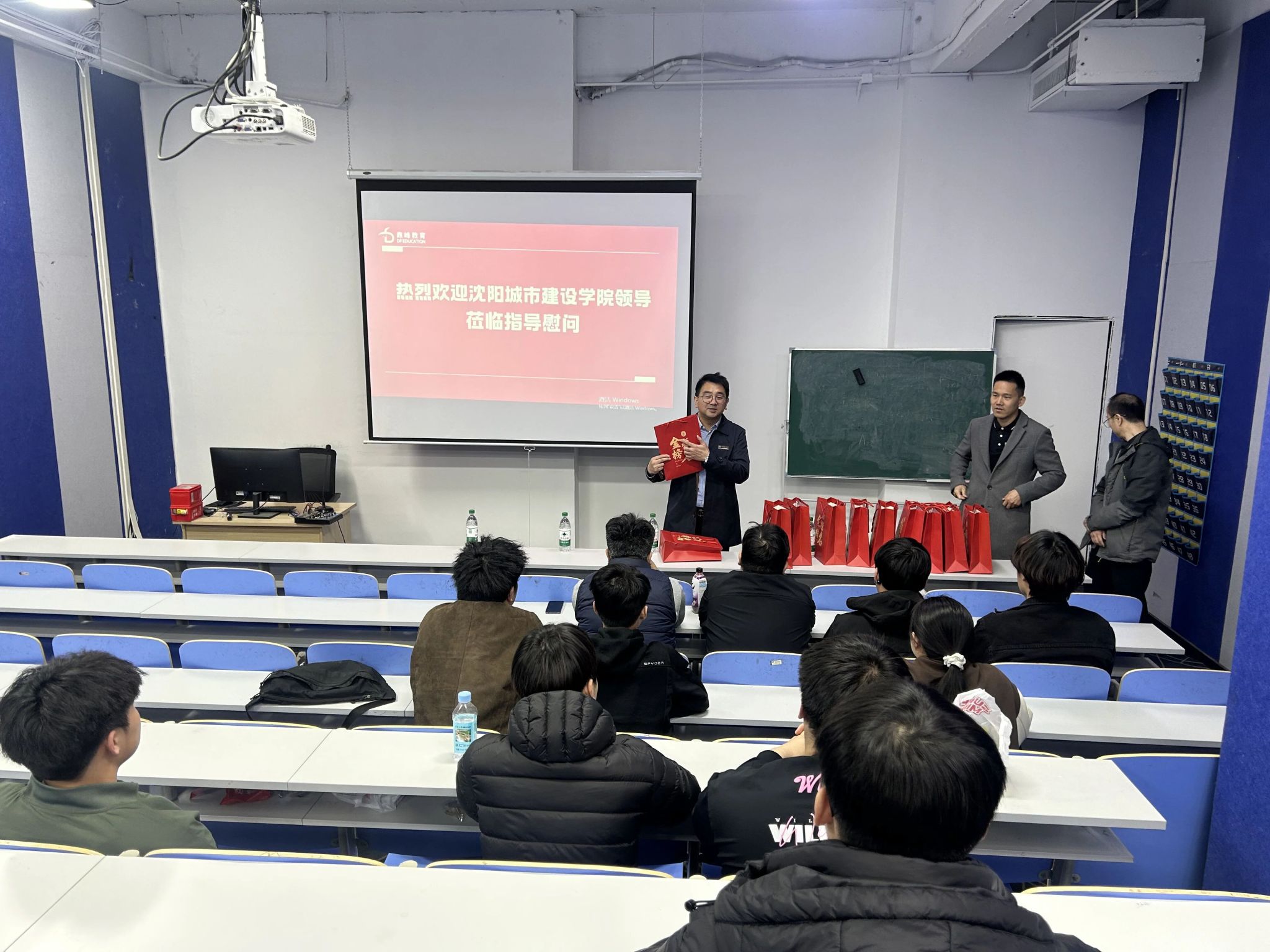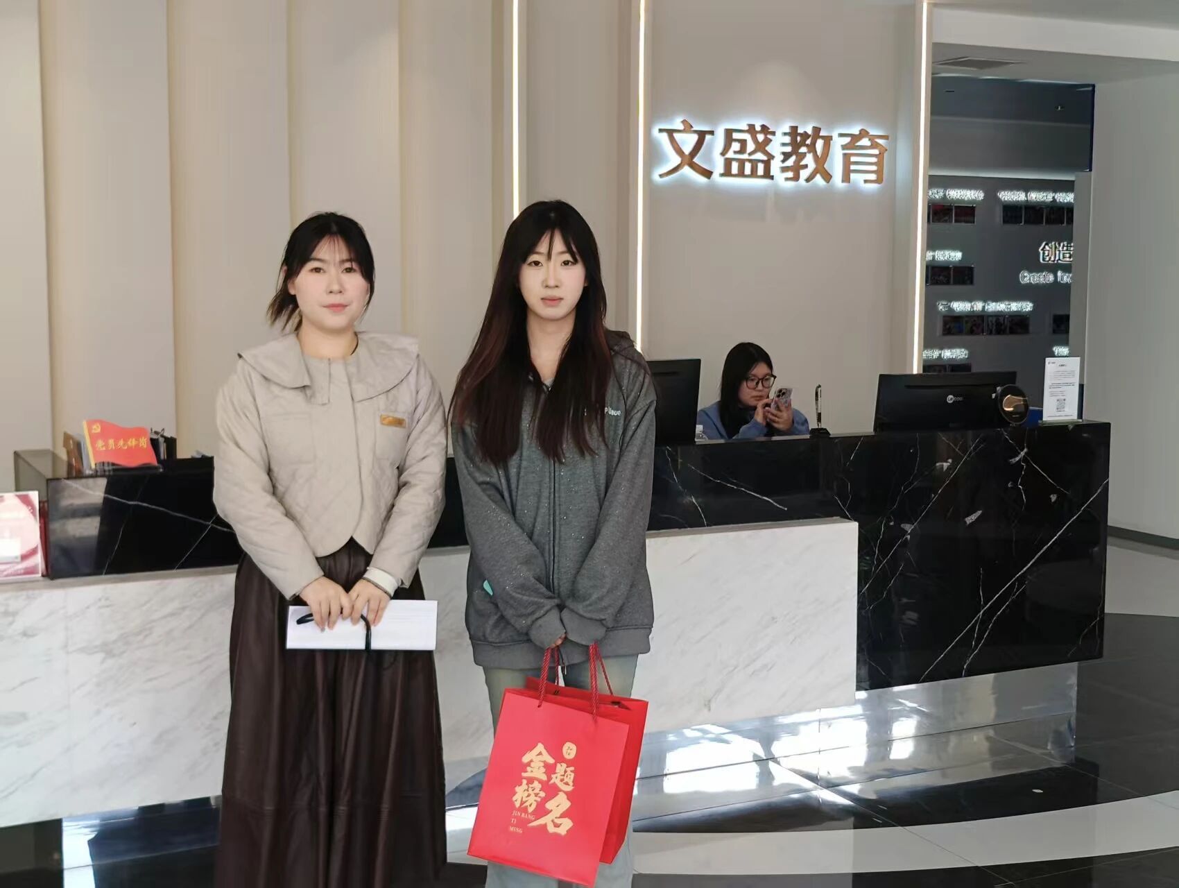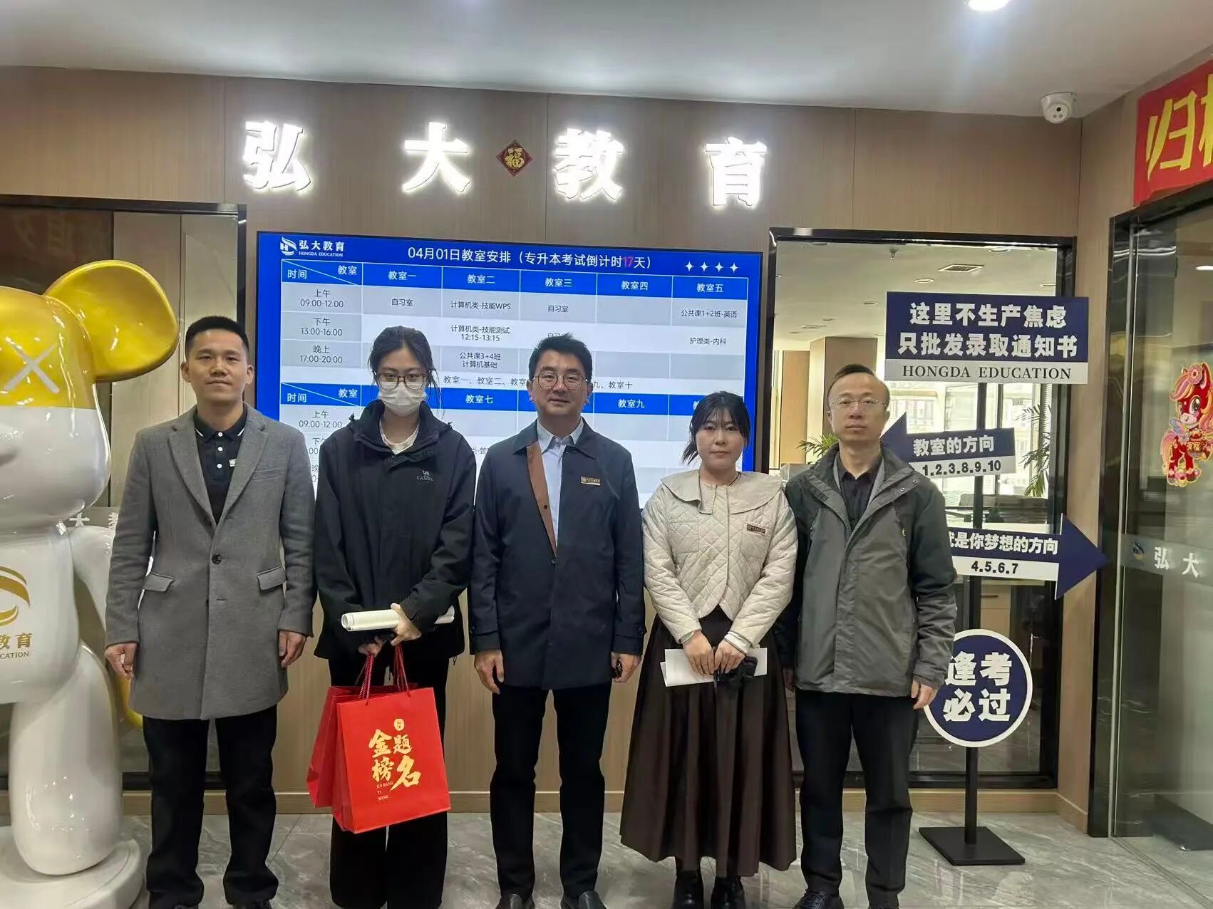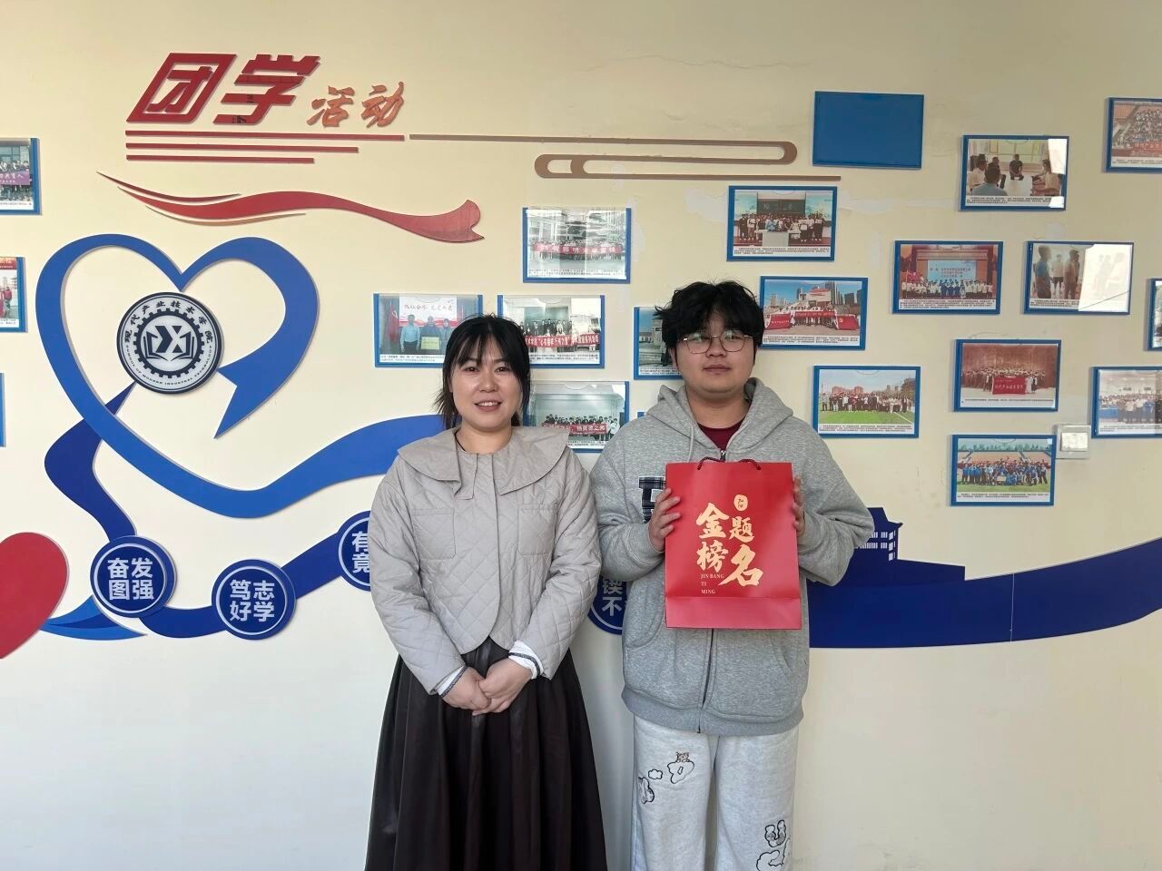 每位同学都收到了一个特别的“加油礼包”——里面装着实用的考试用具,外面是印有“加油,金榜题名”字样的礼品袋。