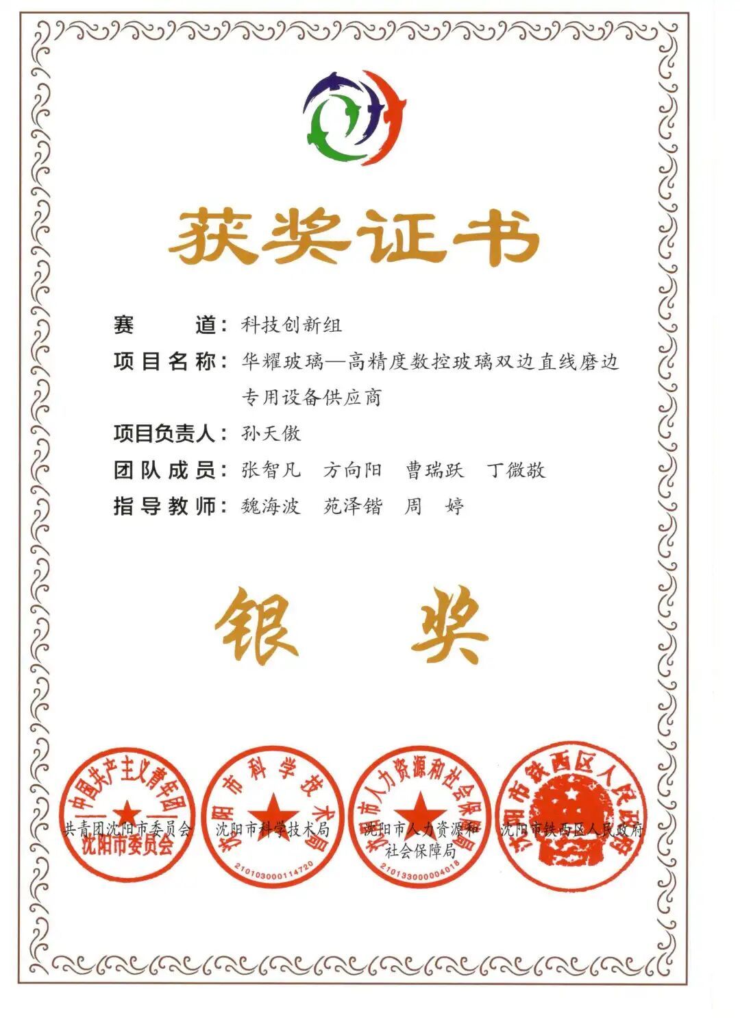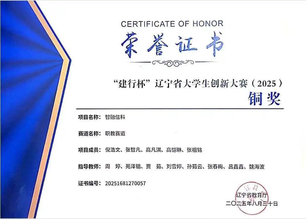 他获得中国大学生创新创业大赛国赛铜奖2项、全国大学生智能车竞赛国赛二等奖、中国机器人及人工智能大赛国赛优秀奖、辽宁省“建行杯”大学生创新创业大赛省赛金奖2项、辽宁省大学生智能车竞赛省赛一等奖、辽宁省“海华杯”机器人及人工智能大赛省赛二等奖、辽宁省挑战杯大学生课外学术作品竞赛二、三等奖、辽宁省“建行杯”大学生创新创业大赛省赛铜奖2项、沈阳市团委创青春大赛银奖。